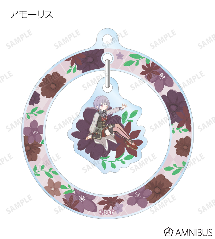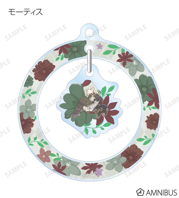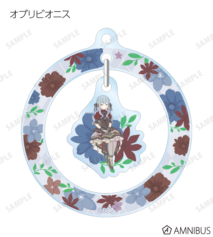 美竹 蘭、青葉 モカ、上原 ひまり、宇田川 巴、羽沢 つぐみ、ドロリス、モーティス、ティモリス、アモーリス、オブリビオニスのイラストをボタニカルデザインに落とし込んで繊細なタッチで新たに描き起こし、ゆらゆら動くアクリルキーホルダーに仕上げました。