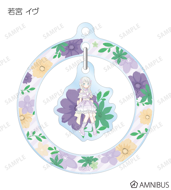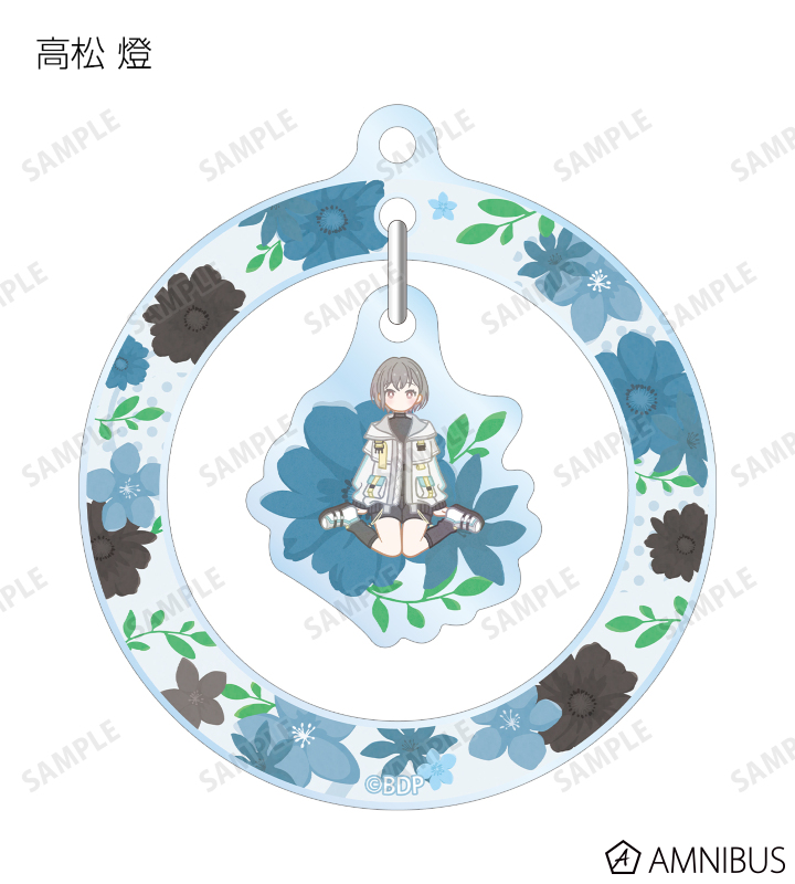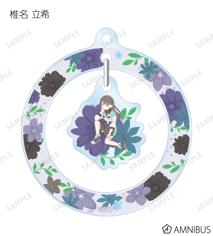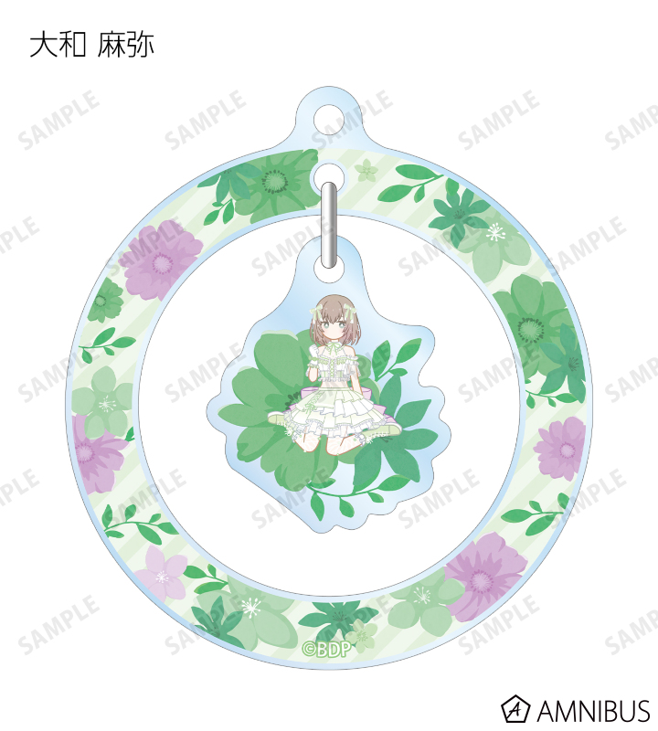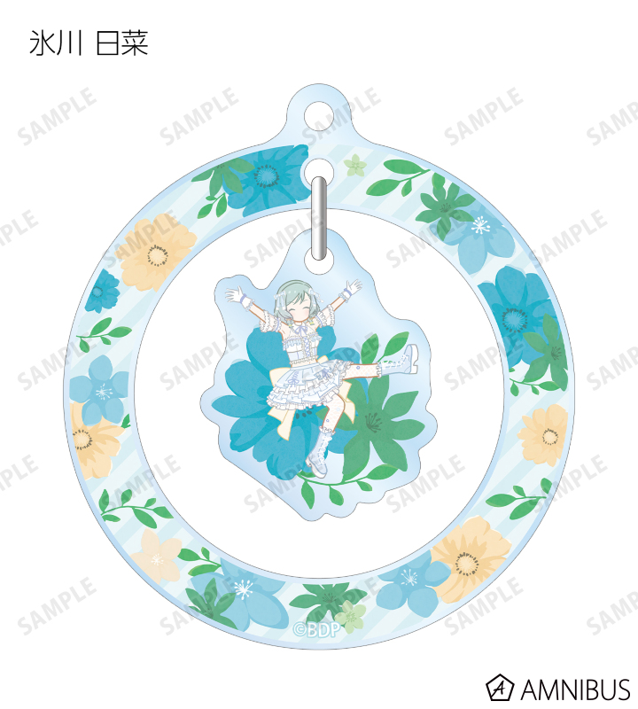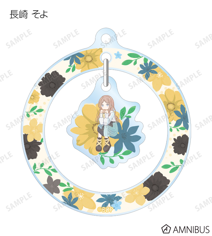 丸山 彩、氷川 日菜、白鷺 千聖、大和 麻弥、若宮 イヴ、高松 燈、千早 愛音、要 楽奈、長崎 そよ、椎名 立希のイラストをボタニカルデザインに落とし込んで繊細なタッチで新たに描き起こし、ゆらゆら動くアクリルキーホルダーに仕上げました。