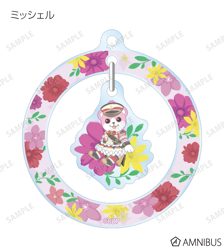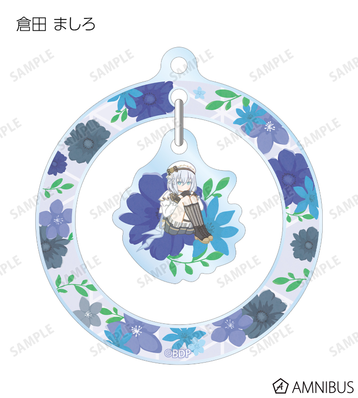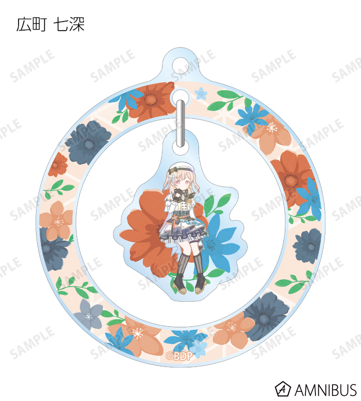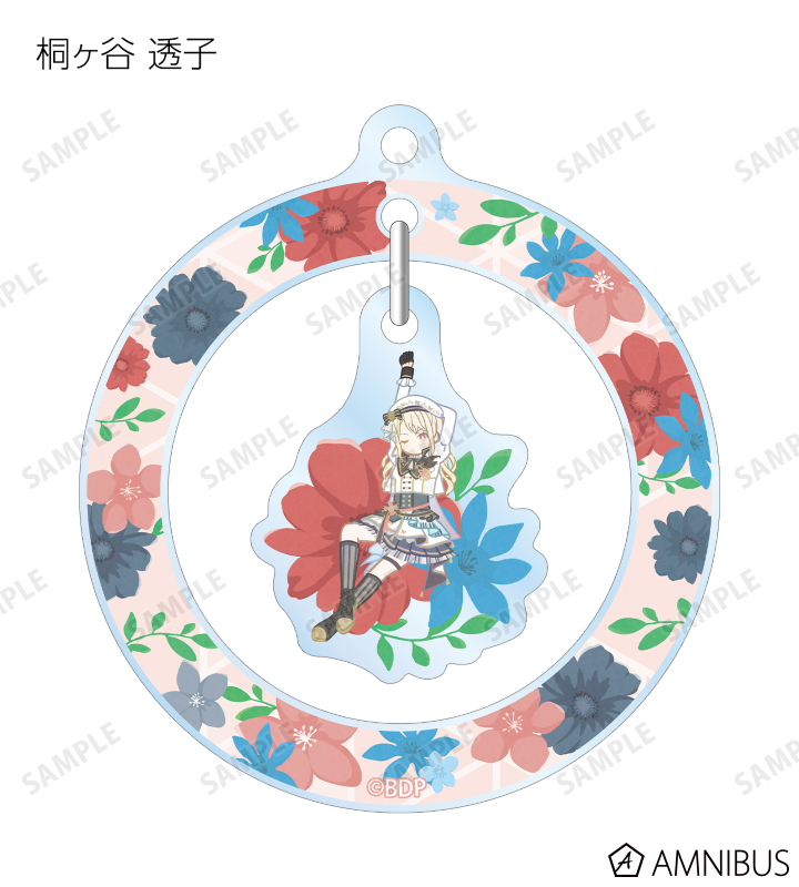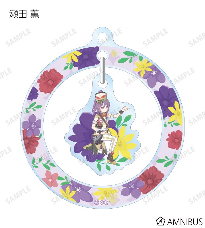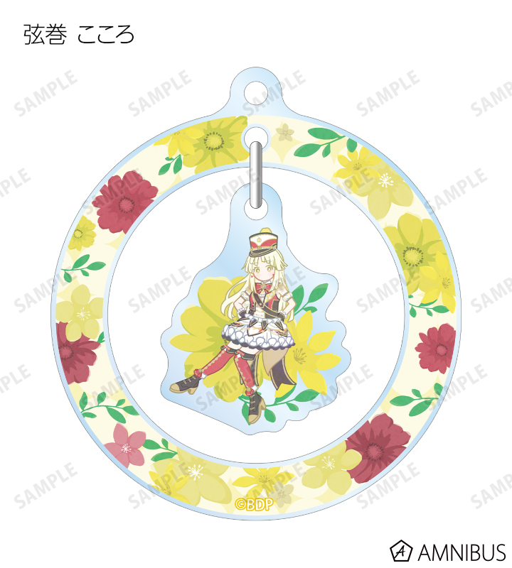 弦巻 こころ、瀬田 薫、北沢 はぐみ、松原 花音、ミッシェル、倉田 ましろ、桐ヶ谷 透子、広町 七深、二葉 つくし、八潮 瑠唯のイラストをボタニカルデザインに落とし込んで繊細なタッチで新たに描き起こし、ゆらゆら動くアクリルキーホルダーに仕上げました。