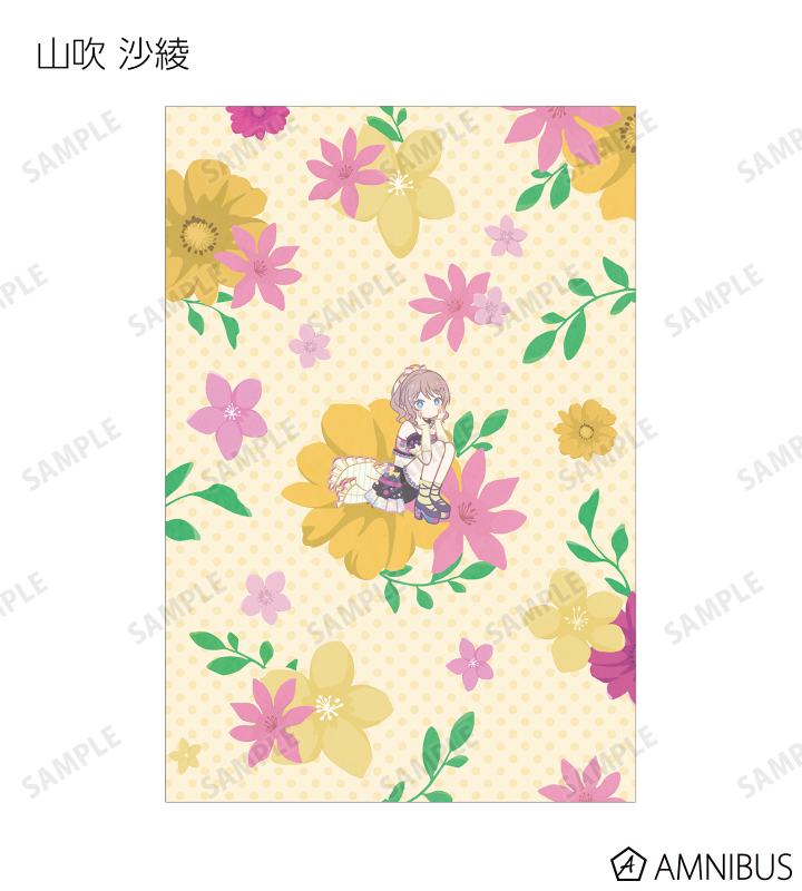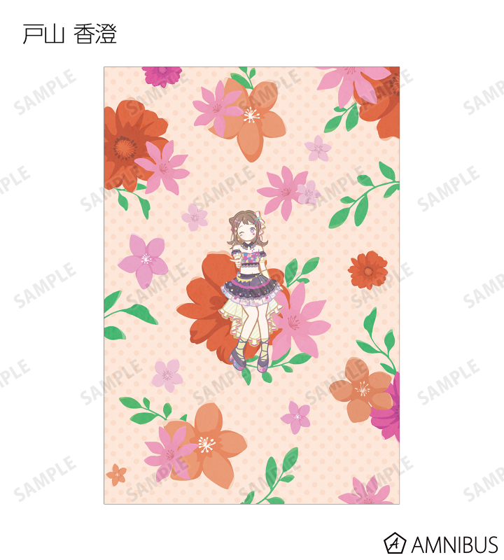 戸山 香澄、花園 たえ、牛込 りみ、山吹 沙綾、市ヶ谷 有咲、仲町 あられ、宮永 ののか、峰月 律、藤 都子、千石 ユノのイラストをボタニカルデザインに落とし込んで繊細なタッチで新たに描き起こし、ポストカードに仕上げました。