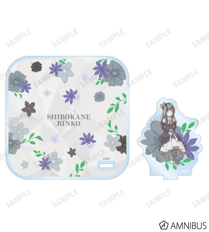 白金 燐子のイラストをボタニカルデザインに落とし込んで繊細なタッチで新たに描き起こし、アクリルスタンド付きコースターに仕上げました。