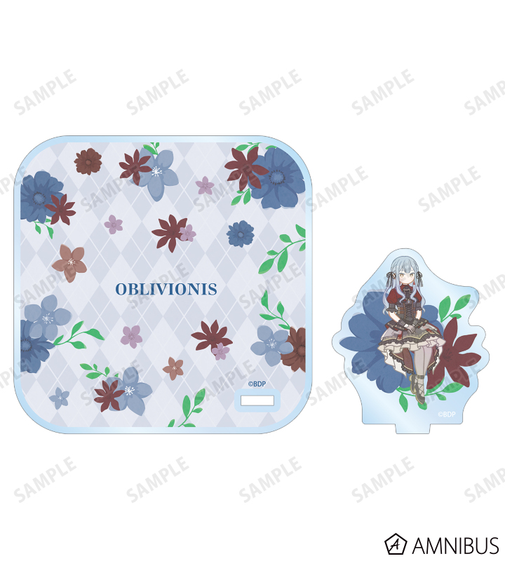 オブリビオニスのイラストをボタニカルデザインに落とし込んで繊細なタッチで新たに描き起こし、アクリルスタンド付きコースターに仕上げました。