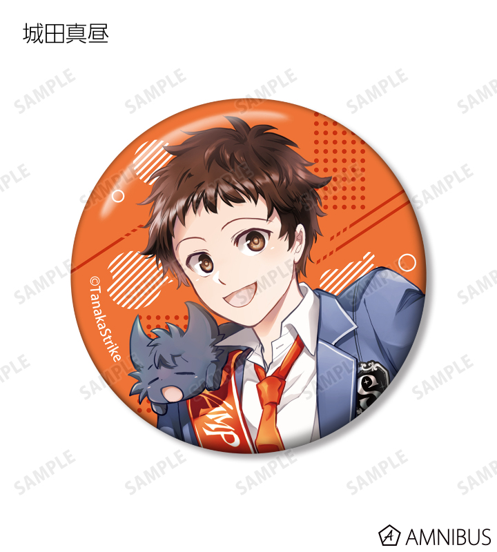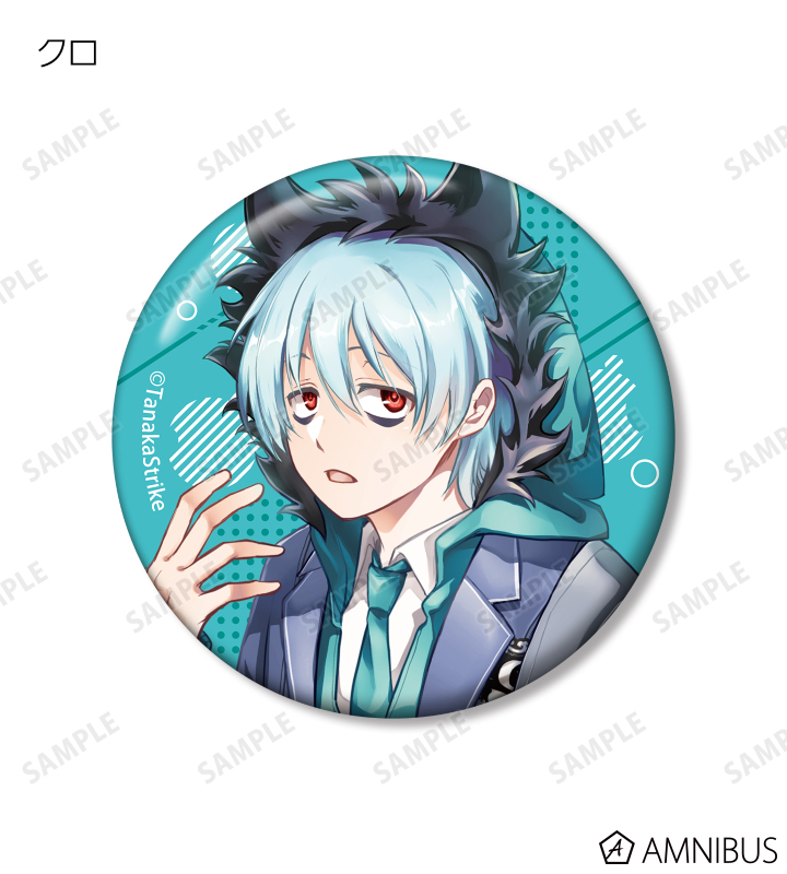 田中ストライク先生描き下ろしイラストの城田真昼、クロ、リヒト・ジキルランド・轟、ロウレス、有栖院御園、有栖院御国、椿、綿貫桜哉、ベルキア、狼谷吊戯を缶バッジに仕上げました。