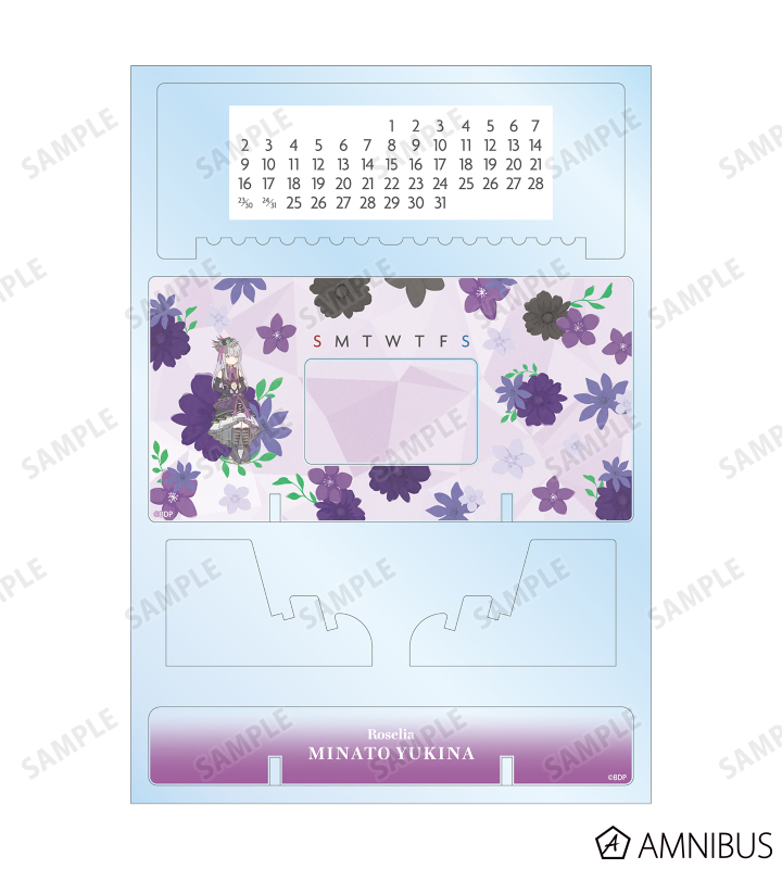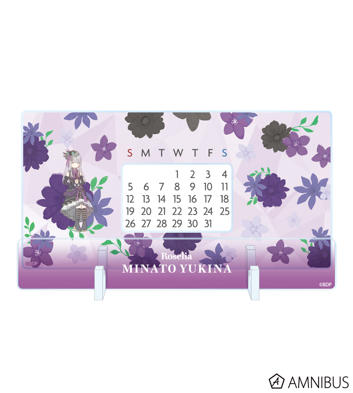 湊 友希那のイラストをボタニカルデザインに落とし込んで繊細なタッチで新たに描き起こし、卓上アクリル万年カレンダーに仕上げました。