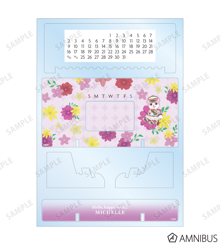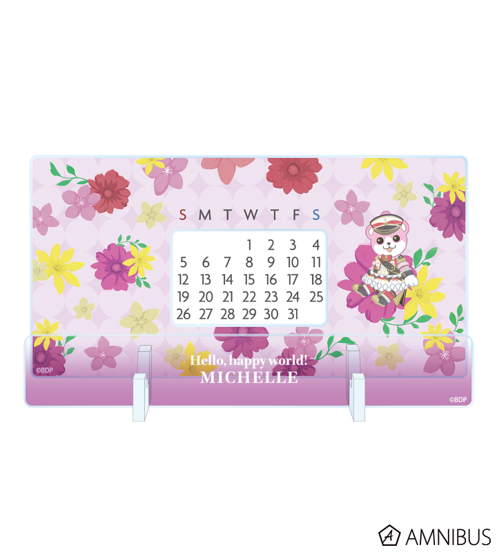 ミッシェルのイラストをボタニカルデザインに落とし込んで繊細なタッチで新たに描き起こし、卓上アクリル万年カレンダーに仕上げました。