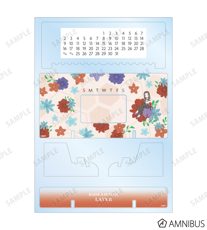 レイヤのイラストをボタニカルデザインに落とし込んで繊細なタッチで新たに描き起こし、卓上アクリル万年カレンダーに仕上げました。