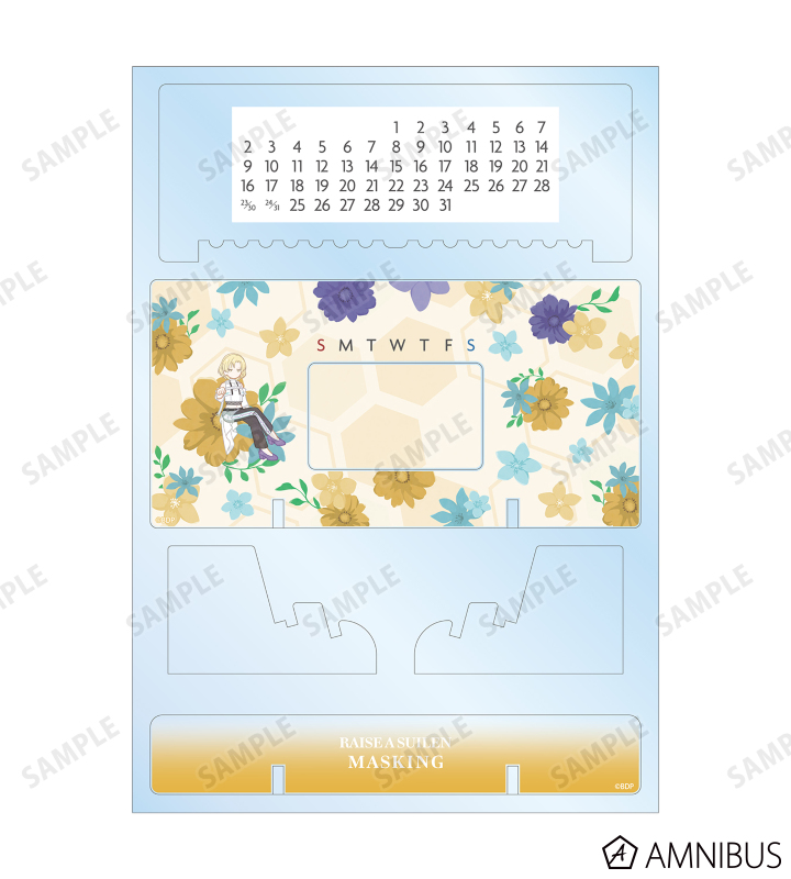 マスキングのイラストをボタニカルデザインに落とし込んで繊細なタッチで新たに描き起こし、卓上アクリル万年カレンダーに仕上げました。