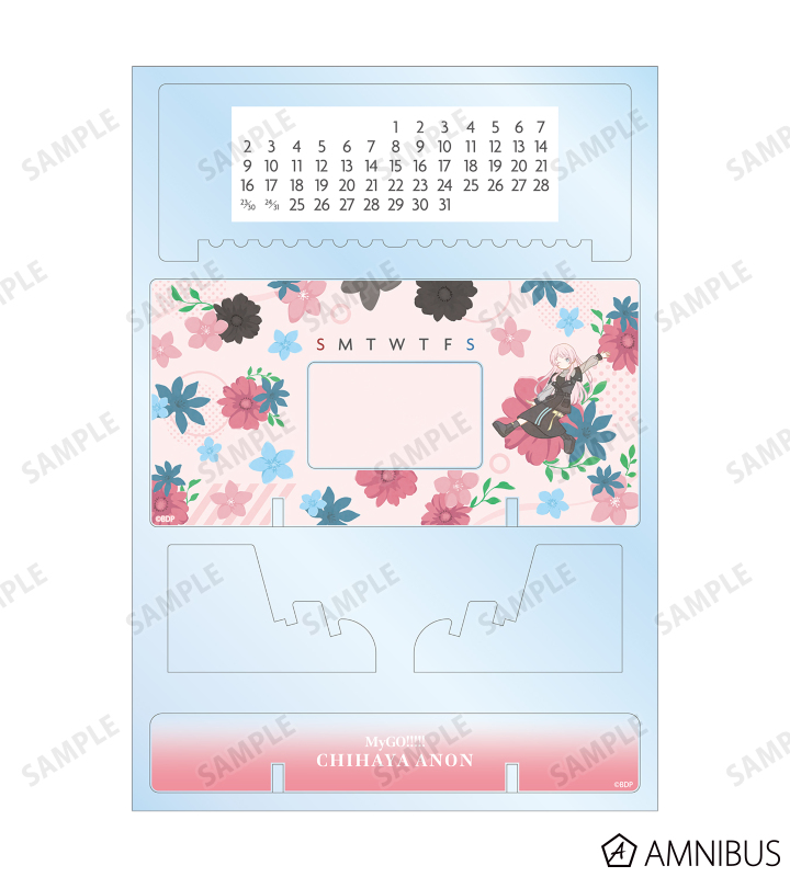 千早 愛音のイラストをボタニカルデザインに落とし込んで繊細なタッチで新たに描き起こし、卓上アクリル万年カレンダーに仕上げました。