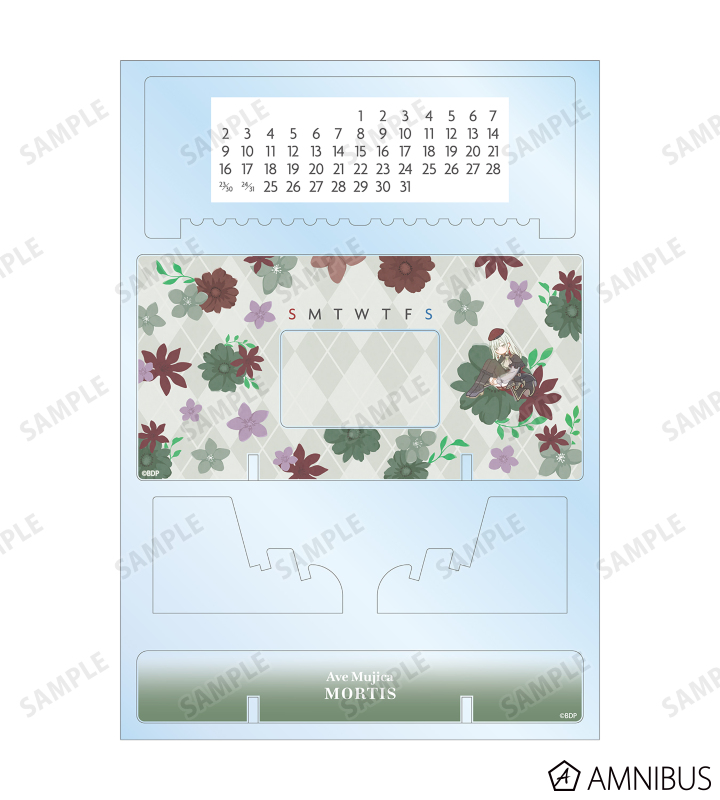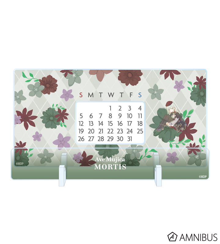 モーティスのイラストをボタニカルデザインに落とし込んで繊細なタッチで新たに描き起こし、卓上アクリル万年カレンダーに仕上げました。
