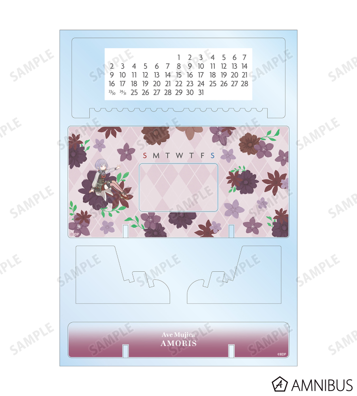 アモーリスのイラストをボタニカルデザインに落とし込んで繊細なタッチで新たに描き起こし、卓上アクリル万年カレンダーに仕上げました。