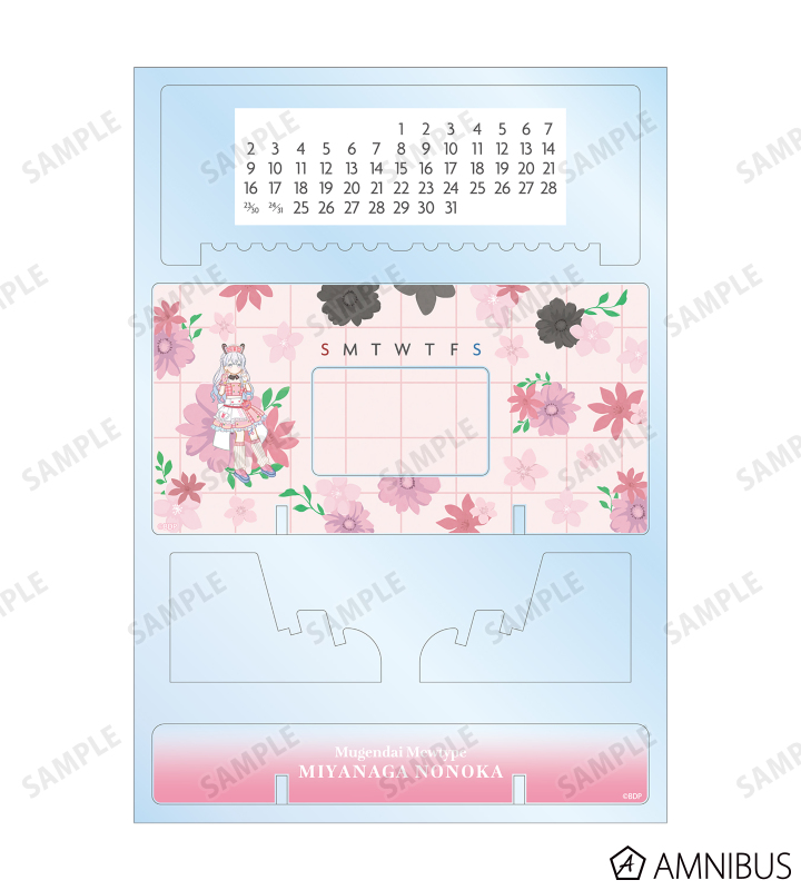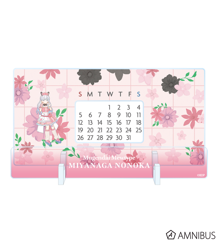 宮永 ののかのイラストをボタニカルデザインに落とし込んで繊細なタッチで新たに描き起こし、卓上アクリル万年カレンダーに仕上げました。