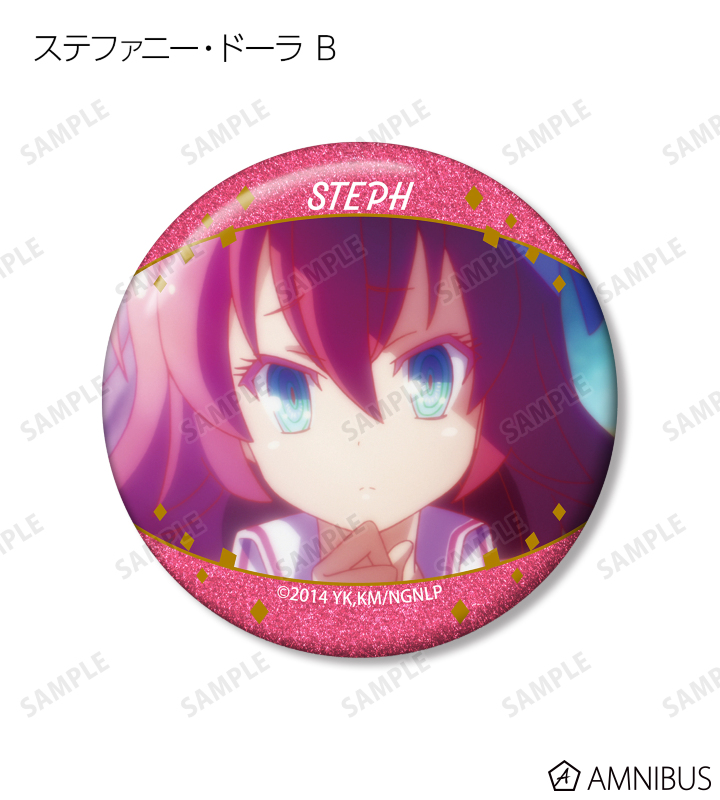 空、白、ステファニー・ドーラ、ジブリール、クラミー・ツェル、フィール・ニルヴァレン、初瀬いづなの印象的なシーンをグリッター加工を施した缶バッジに仕上げました。