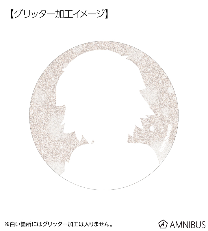 ちりのビジュアルをグリッター加工を施した缶バッジに仕上げました。