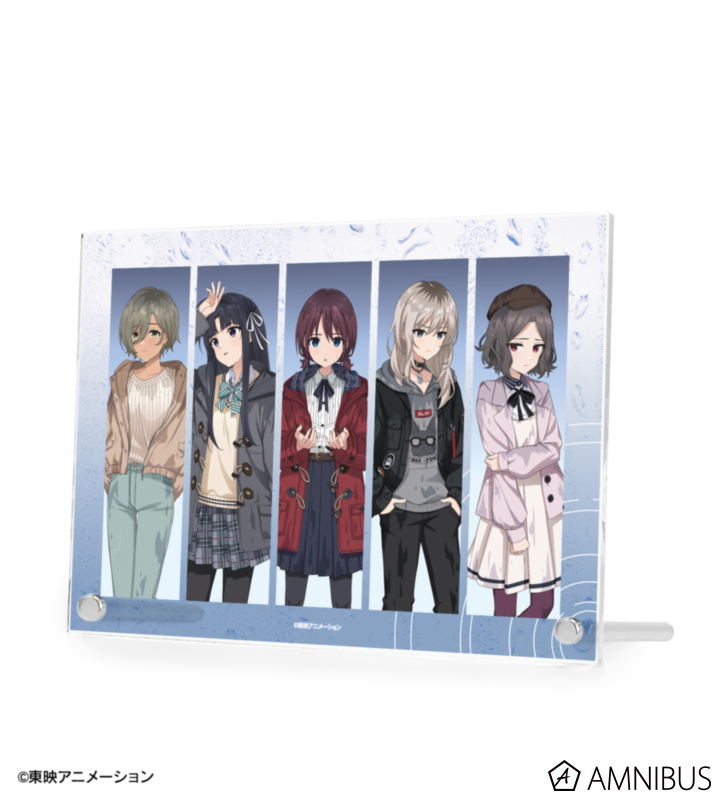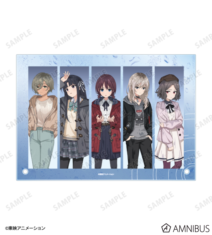 井芹 仁菜、河原木 桃香、安和 すばる、海老塚 智、ルパの描き下ろしイラストをA5サイズのアクリルパネルに仕上げました。