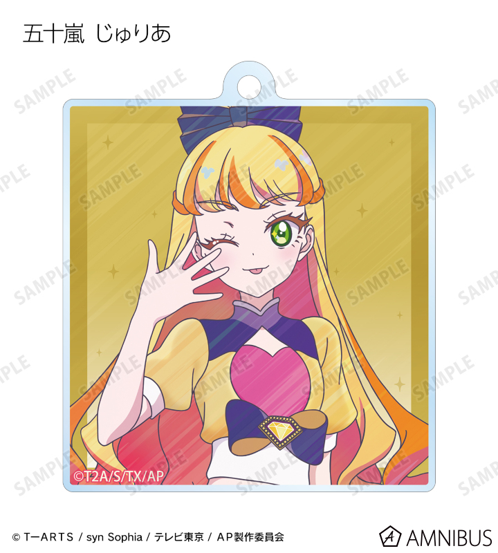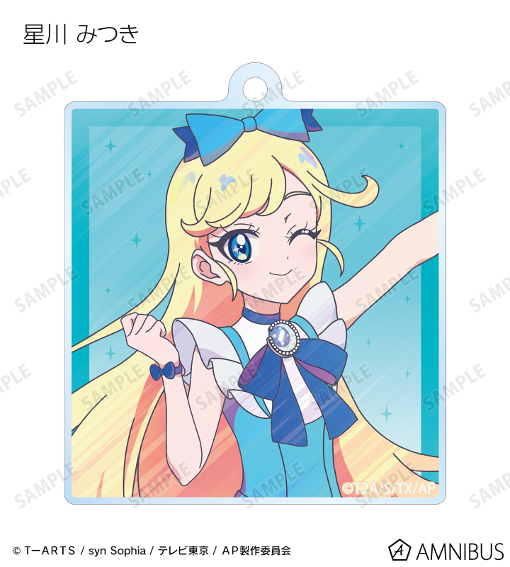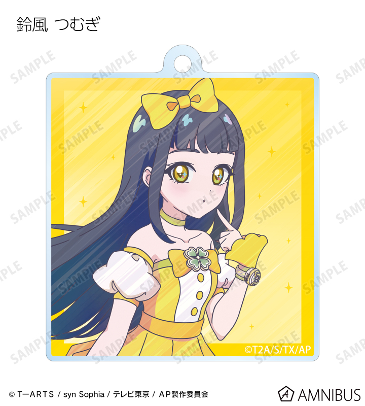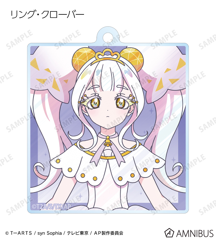 青空 ひまり、星川 みつき、鈴風 つむぎ、一条寺 サクラ、二階堂 タマキ、三ツ葉 アイリ、四之宮 リンリン、真実夜 チィ、五十嵐 じゅりあ、六堂 える、七浦 すばる、七浦 おとめ、八王子 ビビ、リング・クローバー、つむぎ(プリンセスver.)のイラストを新たなタッチで魅力的に表現し、アクリルキーホルダーに仕上げました。