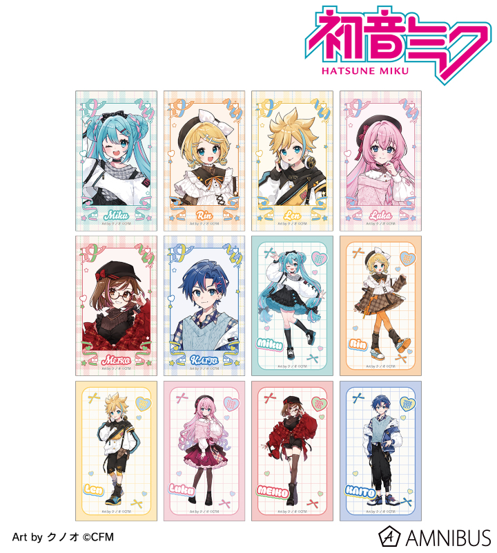 クノオさん描き下ろしイラストの初音ミク、鏡音リン、鏡音レン、巡音ルカ、MEIKO、KAITOをイラストカードに仕上げました。