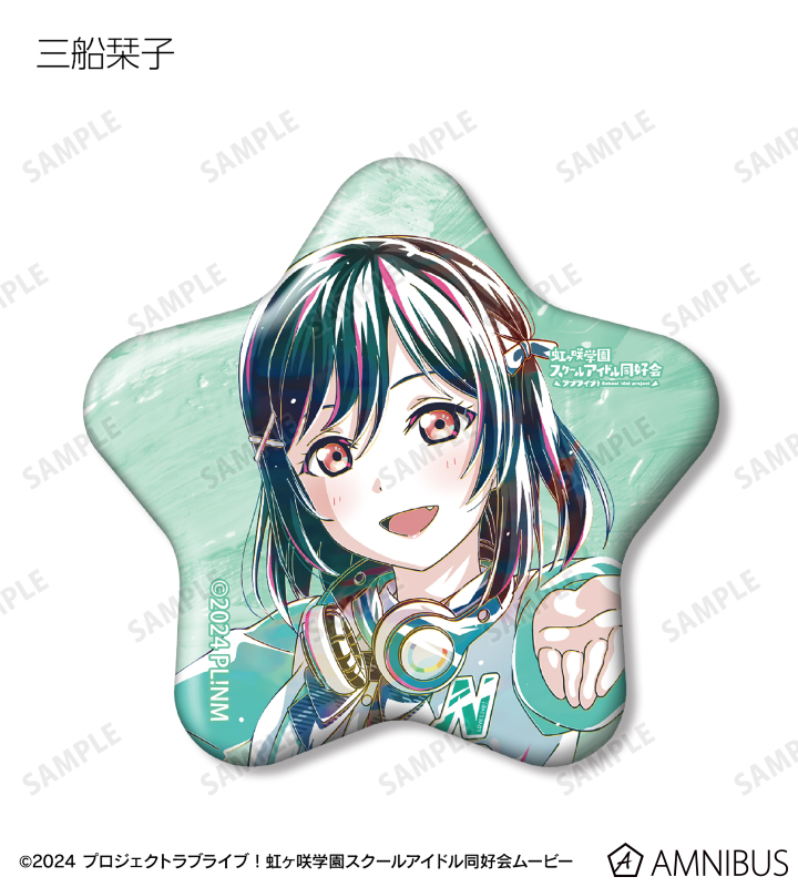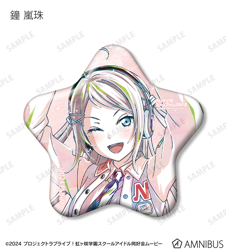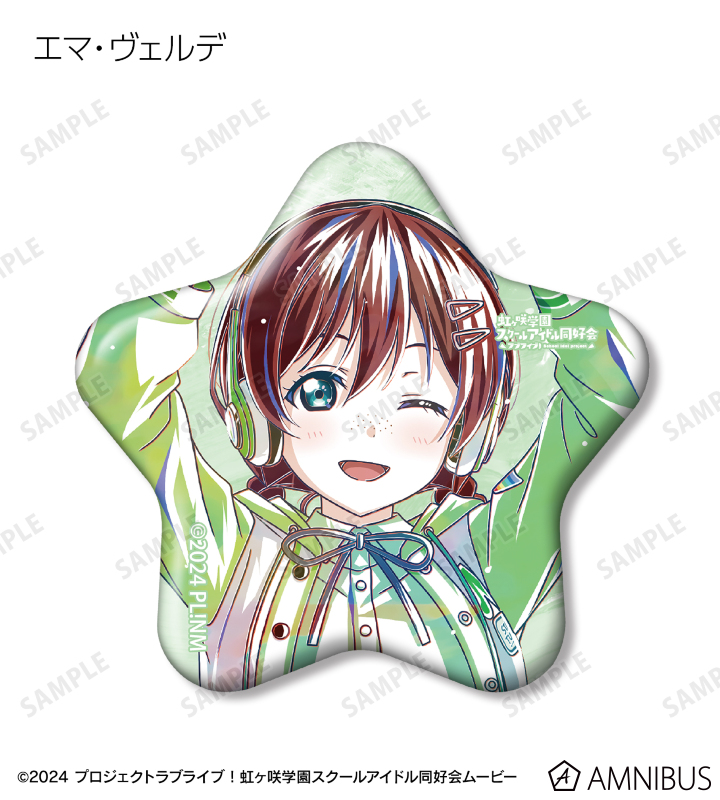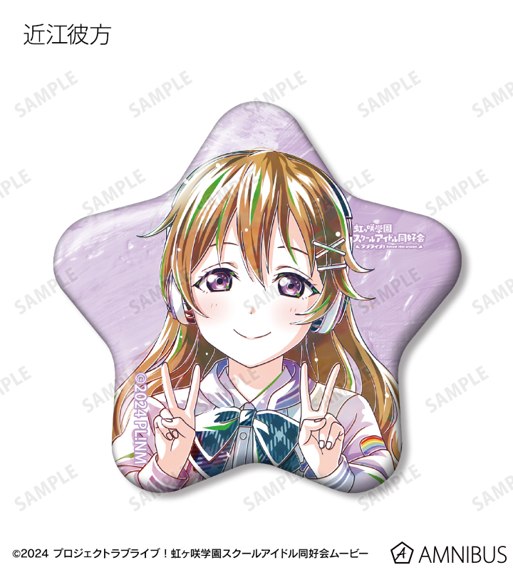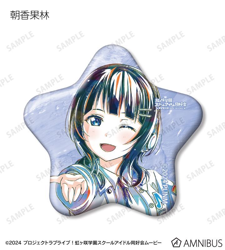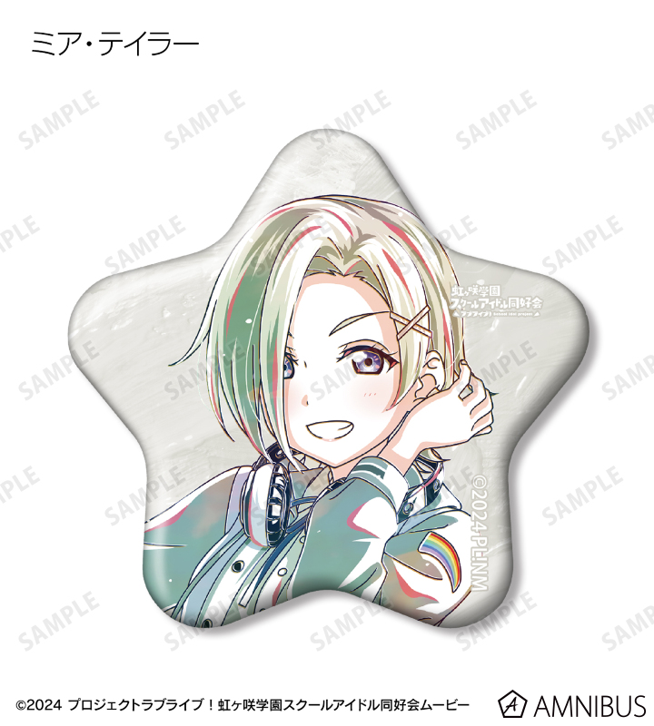 上原歩夢、中須かすみ、桜坂しずく、朝香果林、宮下 愛、近江彼方、優木せつ菜、エマ・ヴェルデ、天王寺璃奈、三船栞子、ミア・テイラー、鐘 嵐珠の描き下ろしイラストを新たなタッチで魅力的に表現し、星型の缶バッジに仕上げました。