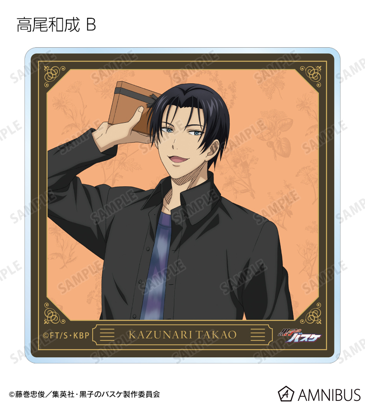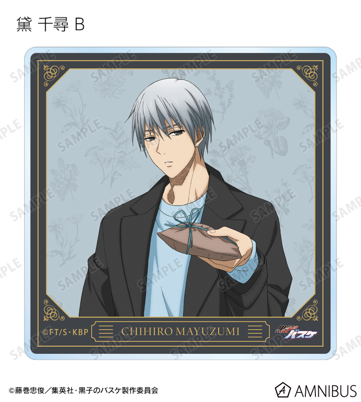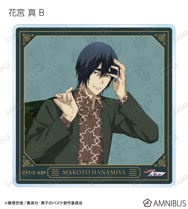 黒子テツヤ、笠松幸男、高尾和成、今吉翔一、氷室辰也、黛 千尋、花宮 真の描き下ろしイラストをアクリルコースターに仕上げました。