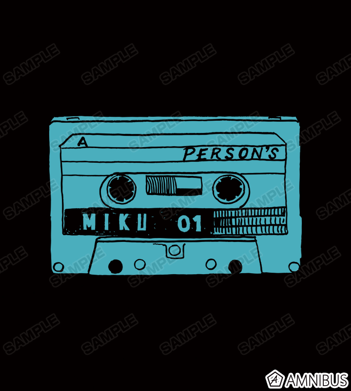 カセットテープのモチーフに名前やナンバリングを組み合わせ、キャラクターからイメージしたカラーリングで仕上げています。