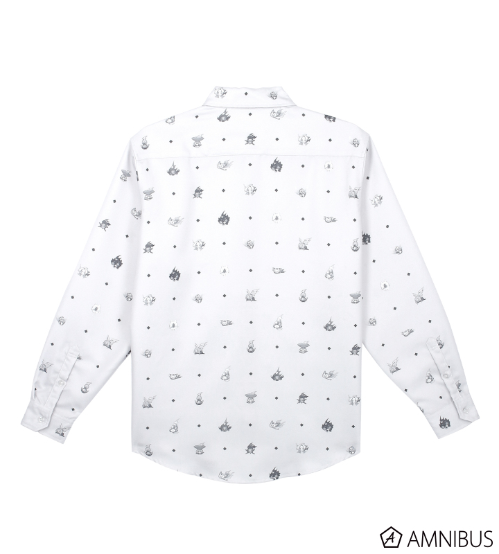 阿弥陀丸、馬孫、コロロ、蜥蜴郎、エリザ、モルフィン、ミック、シャマシュ、スピリット・オブ・ファイヤ、マタムネ、前鬼・後鬼、式神・小鬼をモノトーンにアレンジし、総柄のデザインに仕上げました。
