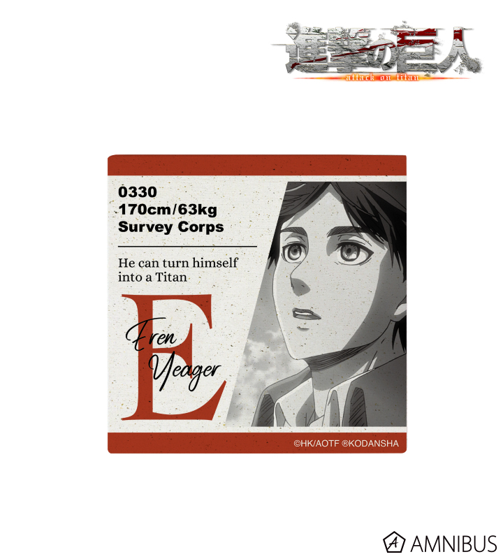 エレンと名前や誕生日、身長体重などのパーソナル情報をレイアウトし、キャラクターからイメージしたカラーリングで仕上げました。