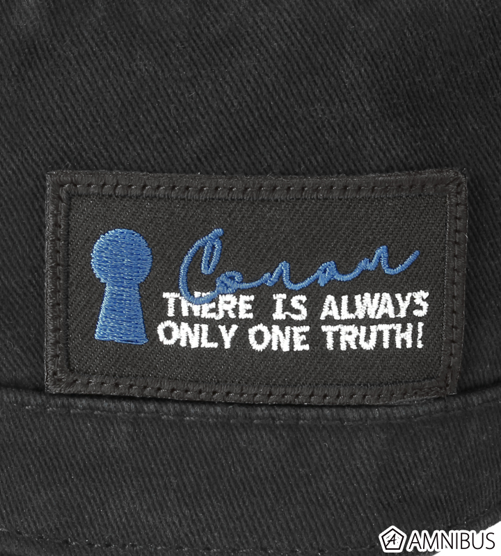 江戸川コナンの名前、鍵穴のモチーフ、「真実はいつもひとつ!」の英訳を組み合わせたデザインのタグをサイドに施しました。