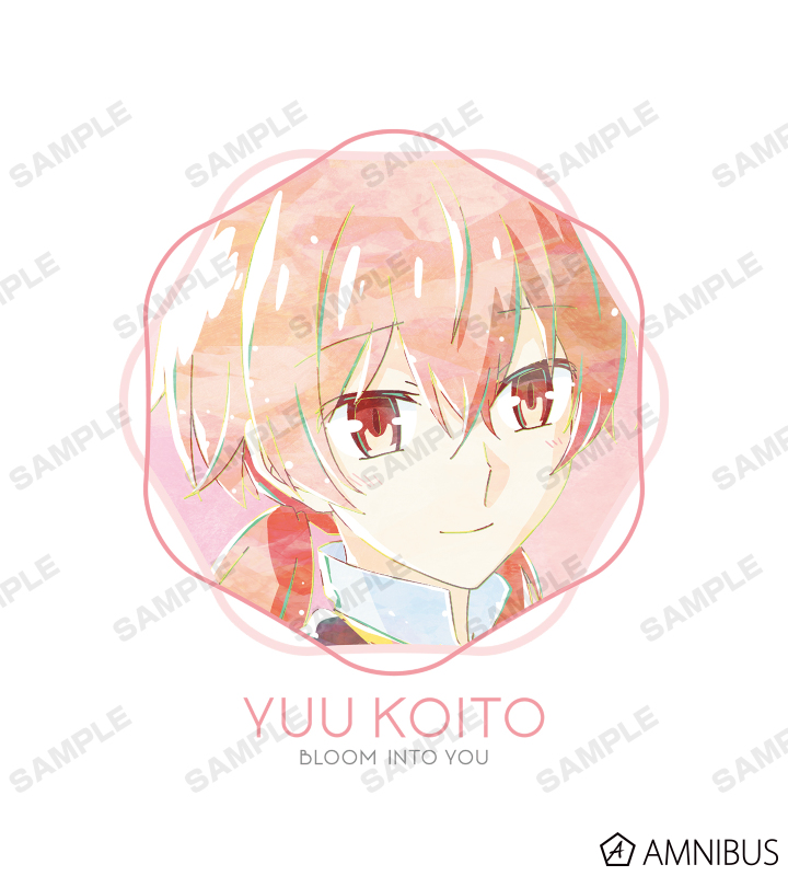 名前や「BLOOM INTO YOU」の文字と合わせて、キャラクターからイメージしたカラーリングで仕上げています。