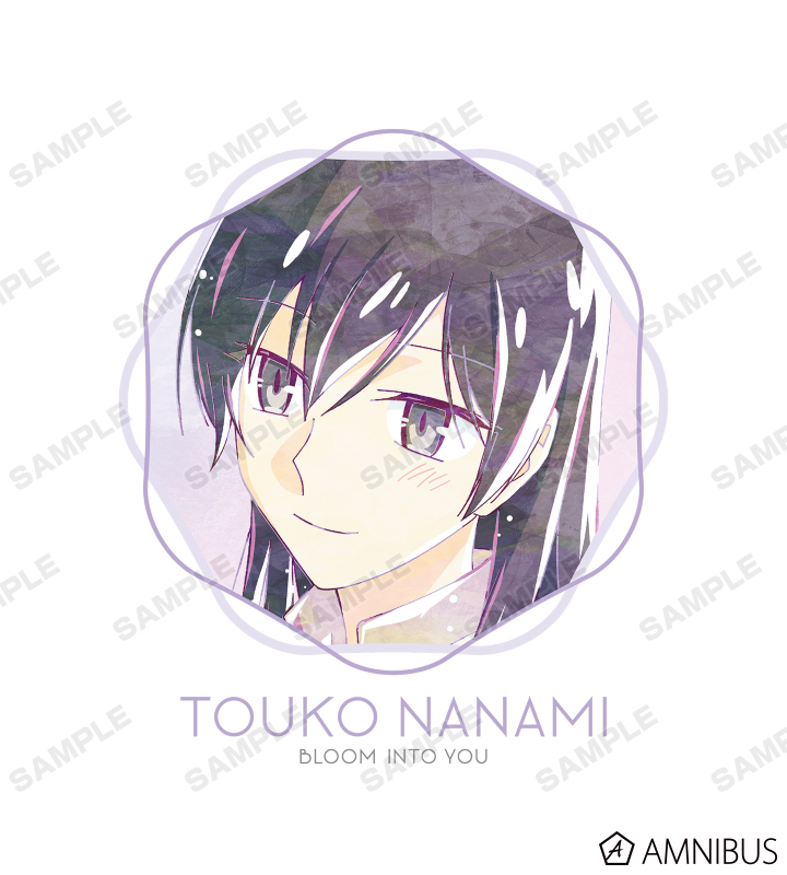 名前や「BLOOM INTO YOU」の文字と合わせて、キャラクターからイメージしたカラーリングで仕上げています。