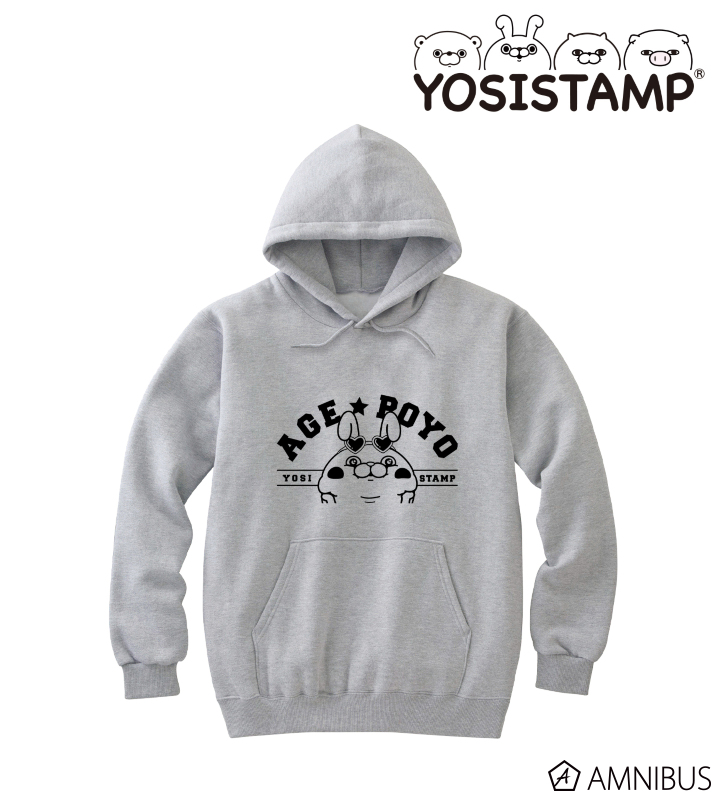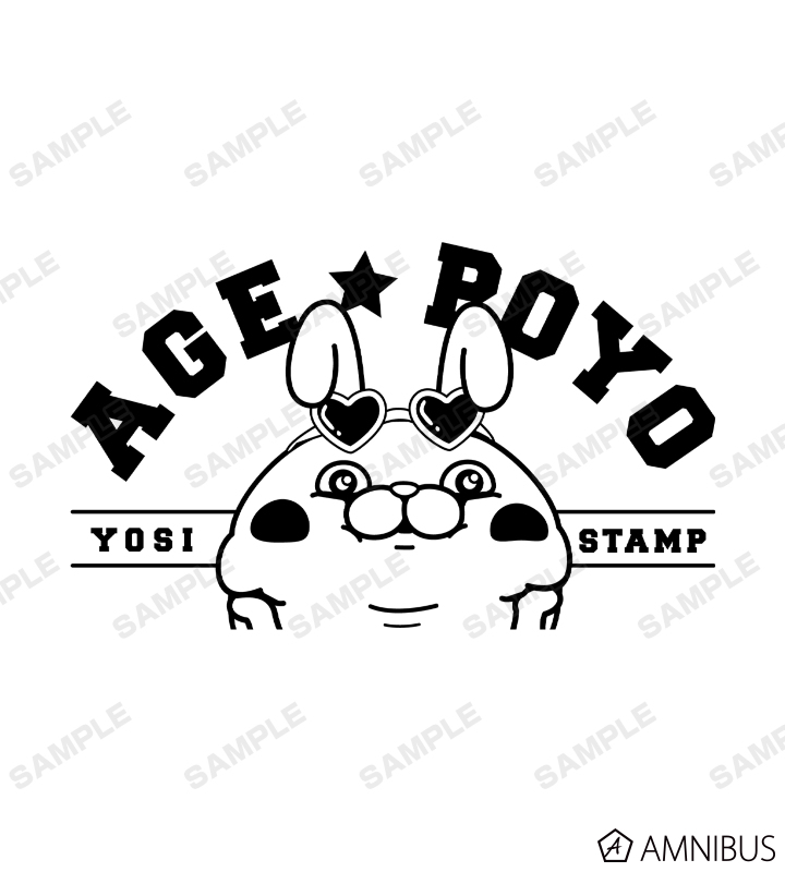 うさぎさんと「AGE★POYO(あげぽよ)」の文字、作品タイトルを組み合わせて、カレッジ風のデザインに仕上げました。
