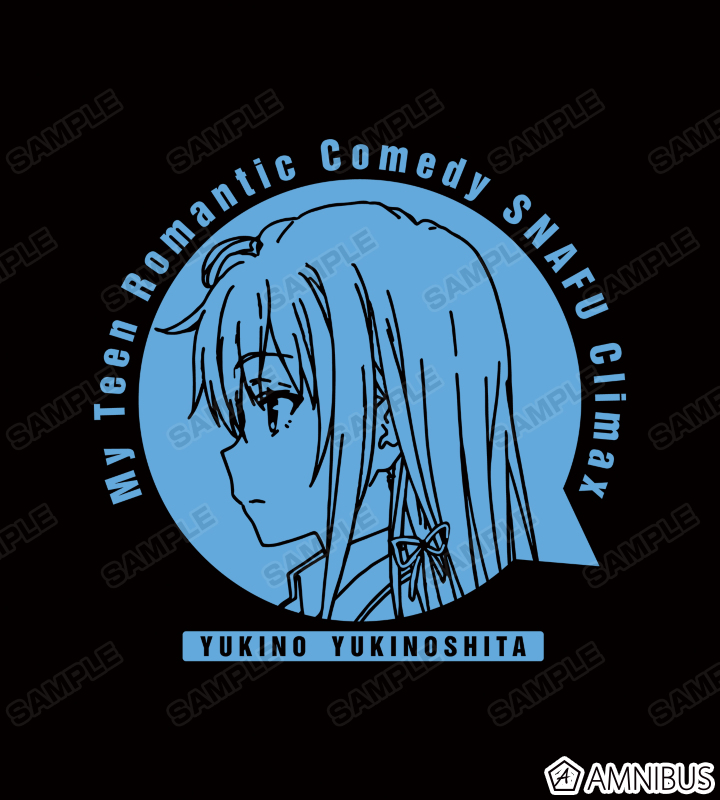 雪ノ下雪乃を吹き出しの形にフレーミングし、作品タイトルや名前と組み合わせて、カレッジ風のデザインに仕上げました。