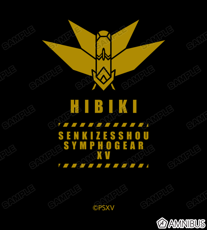 立花 響の名前や作品タイトル、装者のマイクユニットのモチーフなどをレイアウトしたデザインに仕上げました。