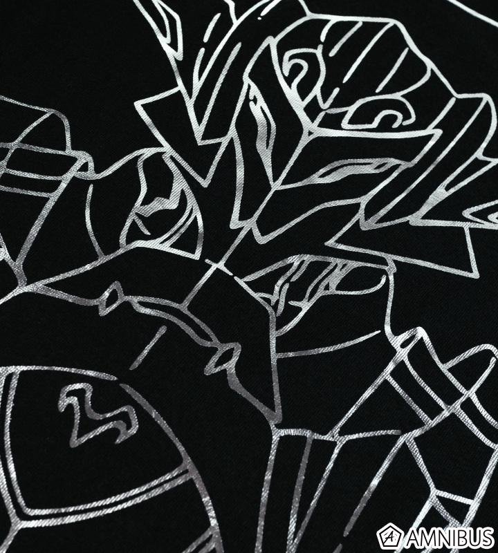 赤のセイバーを、黒地にシルバー箔でプリントすることにより、インパクト抜群のTシャツに仕上げました。