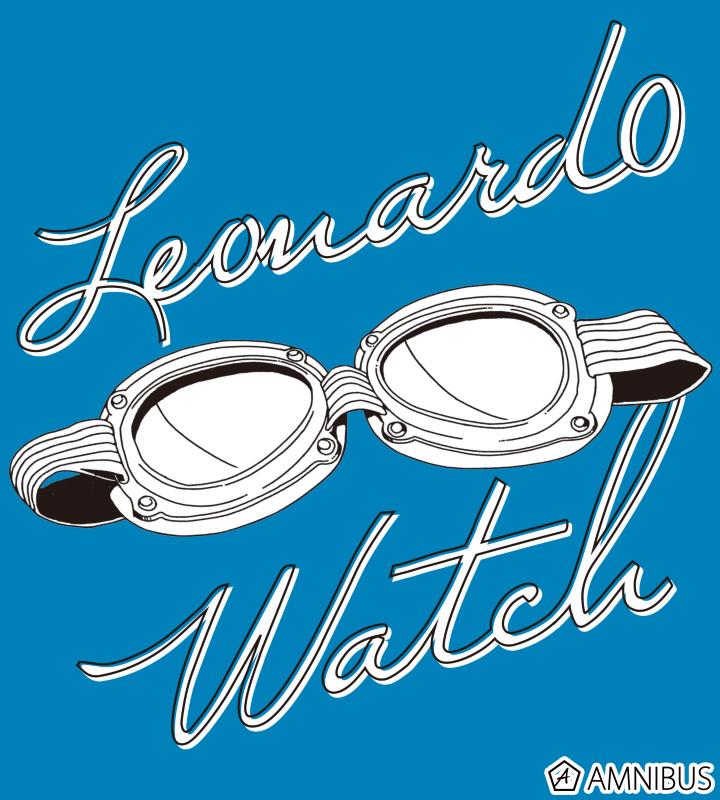 レオナルドが愛用しているゴーグルのスケッチ風イラストと名前を、イメージカラーである水色のパスケースにデザインしました。
