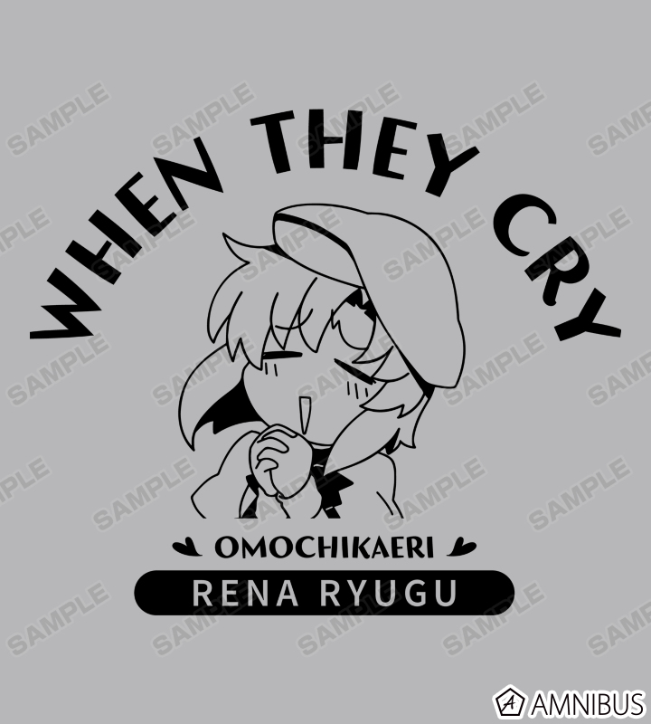 竜宮レナと名前、「お持ち帰り~」の台詞、作品タイトルを組み合わせて、カレッジ風のデザインに仕上げました。