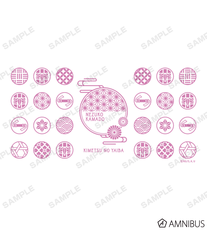 竈門禰󠄀豆子の着物の柄、口に咥えた竹筒、藤の花などを和風のモチーフと合わせてレイアウトしたデザインに仕上げています。