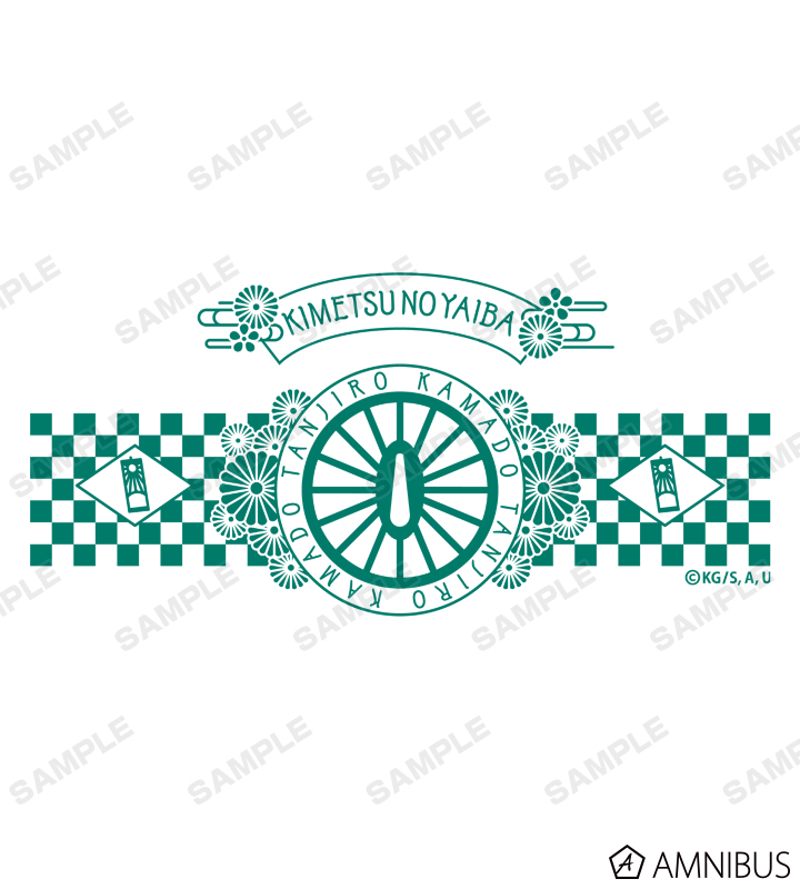 竈門炭治郎の日輪刀の鍔、耳飾り、羽織の柄、藤の花などを和風のモチーフと合わせてレイアウトしたデザインに仕上げています。