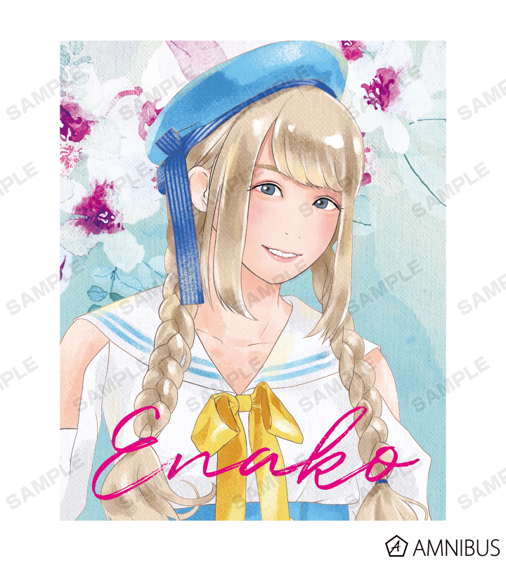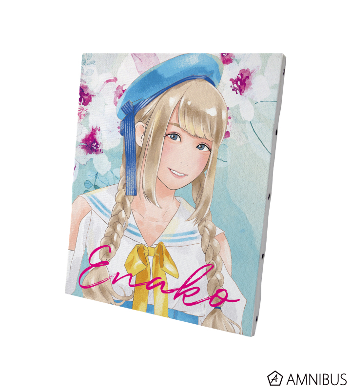 オリジナル衣装のえなこさんをイラスト化し、新たなタッチで魅力的に表現したキャンバスボードに仕上げました。
