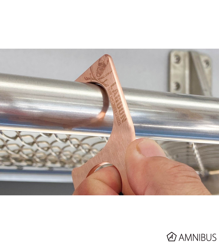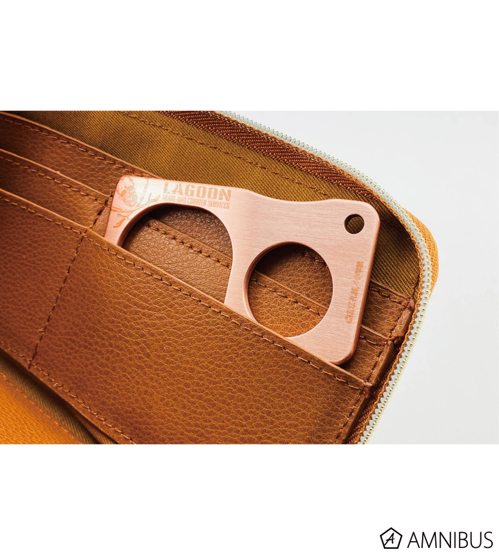 ラグーン商会をイメージしたロゴマークを透かし彫りであしらったデザインに仕上げました。