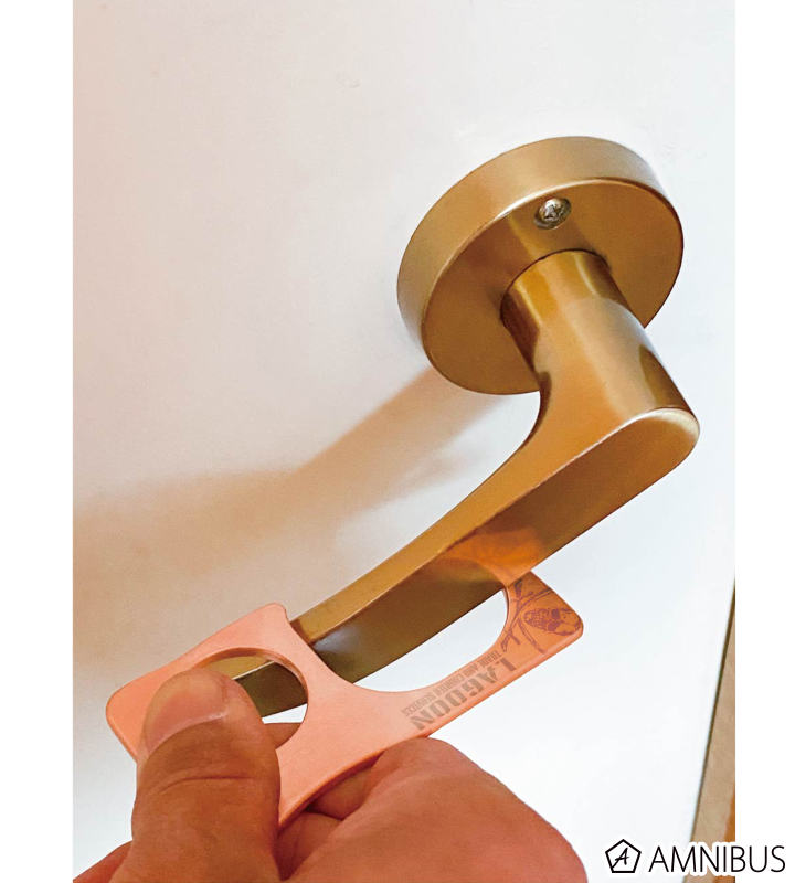 エスカレーターの手すり、レバーが付いたドアノブ、エレベーターボタンも操作可能。