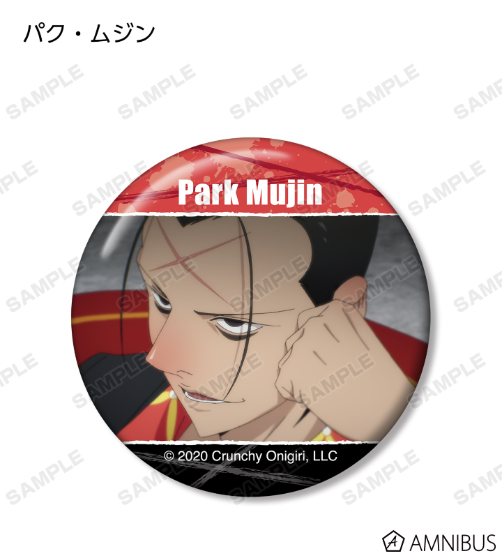 ジン・モリ、ハン・デイ、ユ・ミラ、パク・ムジン、パク・イルピョ、ジェガル・テク、審判員O、審判員Q、ジョン・ジュゴク、ナース・ヒール&サイのワンシーンと名前を合わせてレイアウトした缶バッジに仕上げました。