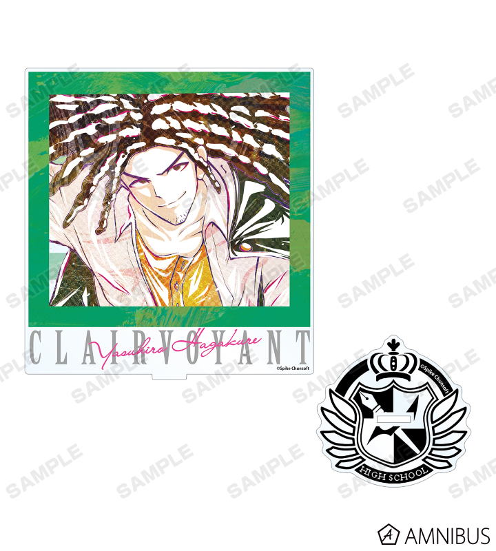 超高校級の“占い師”の称号の英語表記、作品タイトル、名前を合わせてレイアウトしたBIGなアクリルスタンドに仕上げています。