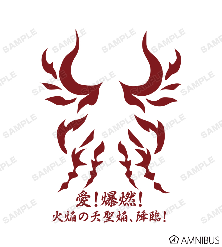 歩照瀬 焔の夭聖体の羽と決め台詞を背面にレイアウトしました。