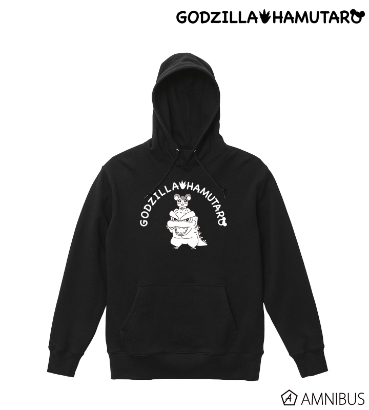 ゴジラに乗るハム太郎をレイアウトしたデザインに仕上げました。