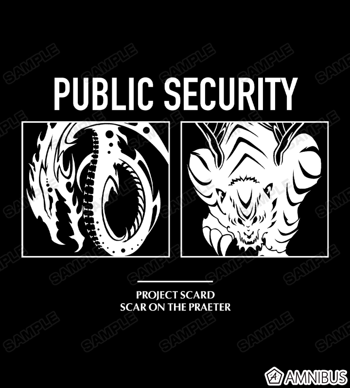 「公安特務」に所属するスカードのタトゥーを組織名などと合わせてレイアウトしたデザインに仕上げました。