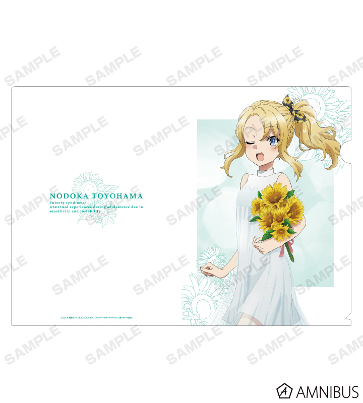 アニメイトで開催された「『青春ブタ野郎はバニーガール先輩の夢を見ない』サマーフェア 2021 in アニメイト」描き下ろしイラストのひまわりを持った白いワンピース姿の豊浜のどかをメインにデザインしました。