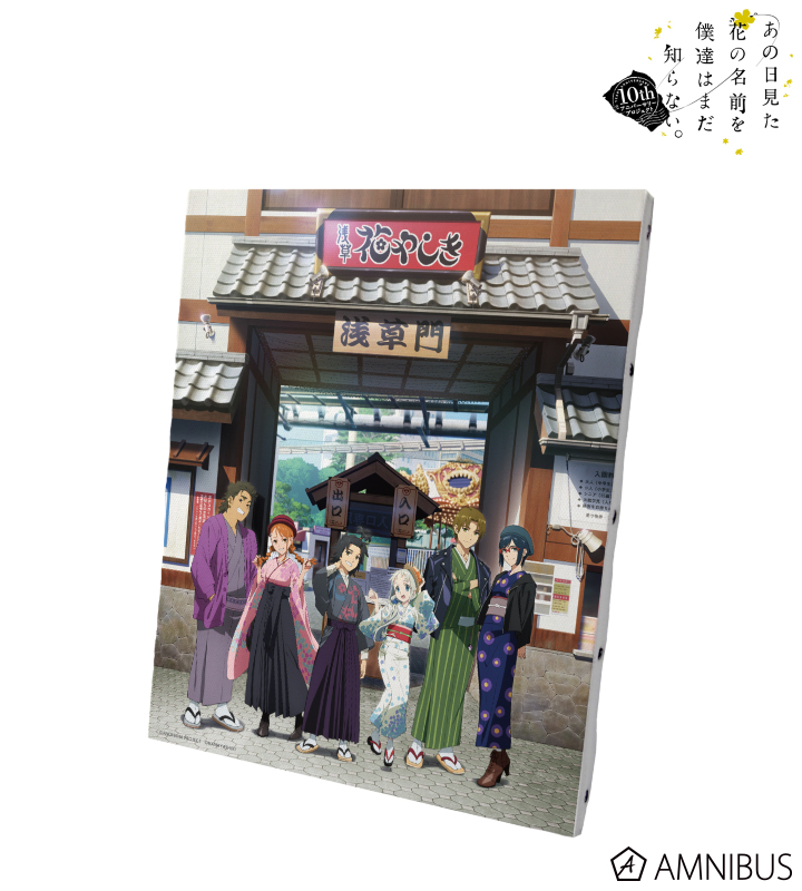 『あの日見た花の名前を僕達はまだ知らない。』×「浅草花やしき」のコラボレーションアイテム「描き下ろしイラスト モダン和装ver. キャンバスボード」の登場です。