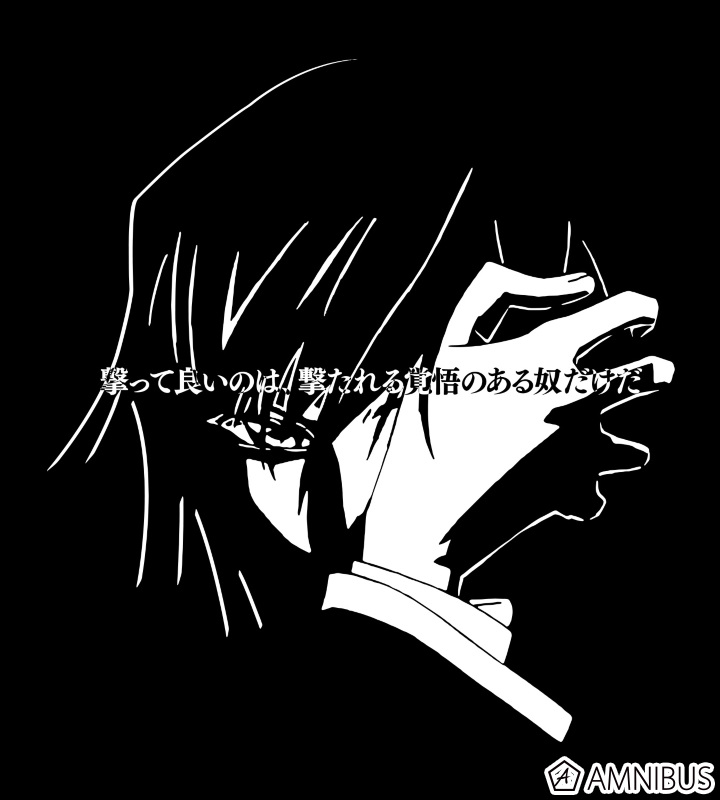ルルーシュ・ランペルージの印象的な台詞「撃って良いのは、撃たれる覚悟のある奴だけだ」をルルーシュのシルエットと大胆に織り交ぜたデザインになっております。