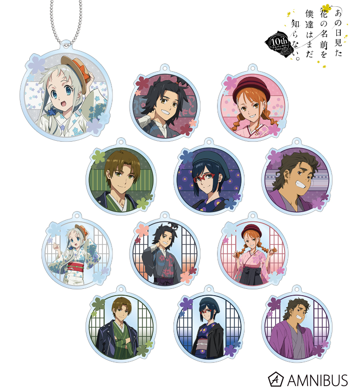 『あの日見た花の名前を僕達はまだ知らない。』×「浅草花やしき」のコラボレーションアイテム「描き下ろしイラスト トレーディング モダン和装ver. アクリルキーホルダー」の登場です。
