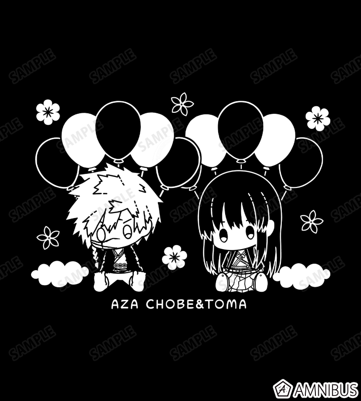 亜左 弔兵衛と桐馬をお空に風船でぷかぷかと浮いたぬいぐるみをイメージして描き起こしました。