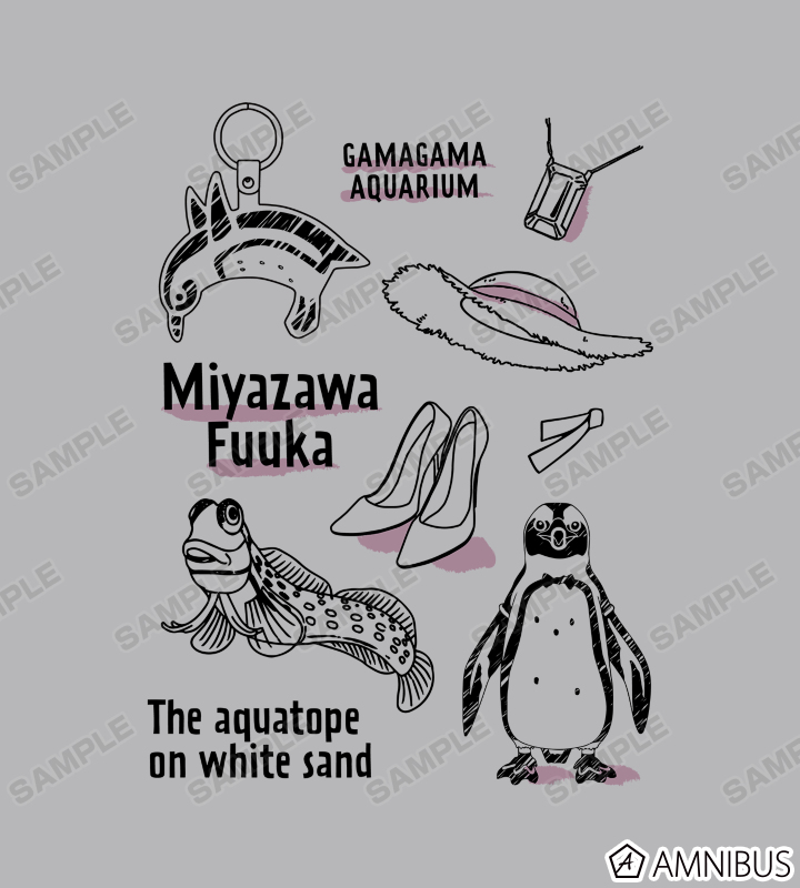 作品タイトルや宮沢 風花の名前、ケープペンギン、身につけているアクセサリーなどをスケッチ風のタッチで新たに描き起こしました。